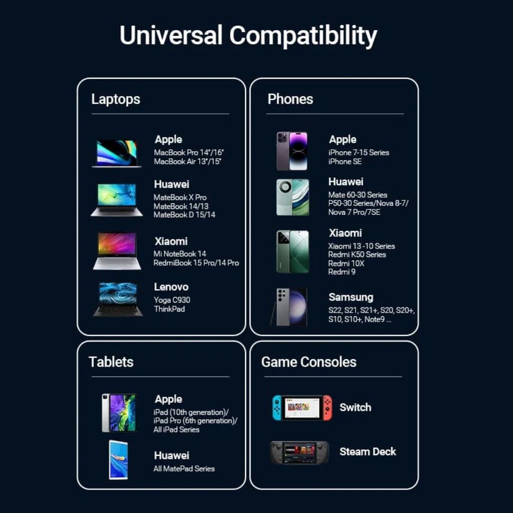 Cargador de Escritorio 2 USB-A+ 2 USB-C GaN 18W/18W/100W/100W / Cable 1.5M / Blanco FBSWG-EU Vention