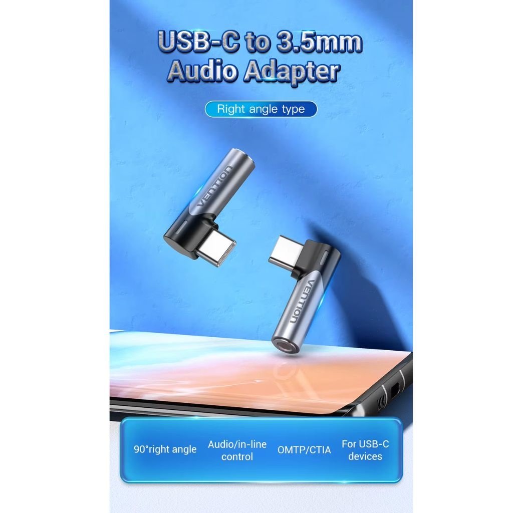 Adaptador a Audio USB-C a 3.5mm Macho/Hembra / 90° / Gris BGWH0 Vention