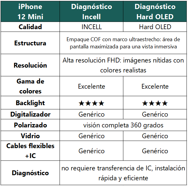 Display Apple iPhone 12 Mini (Hard OLED) Comp. Negro Diagnostic