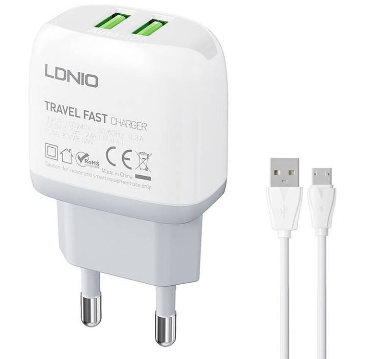 Cargador Pared A2218 Micro USB 2.4A 2 USB Blanco LDNIO