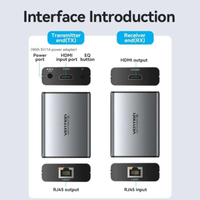Extensor de Cable HDMI a RJ45 Hasta 60M / Gris AKGH0-EU Vention