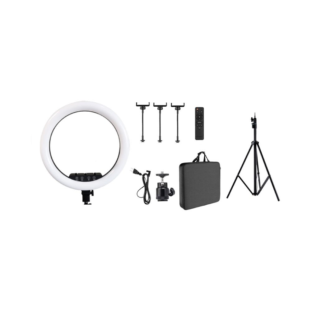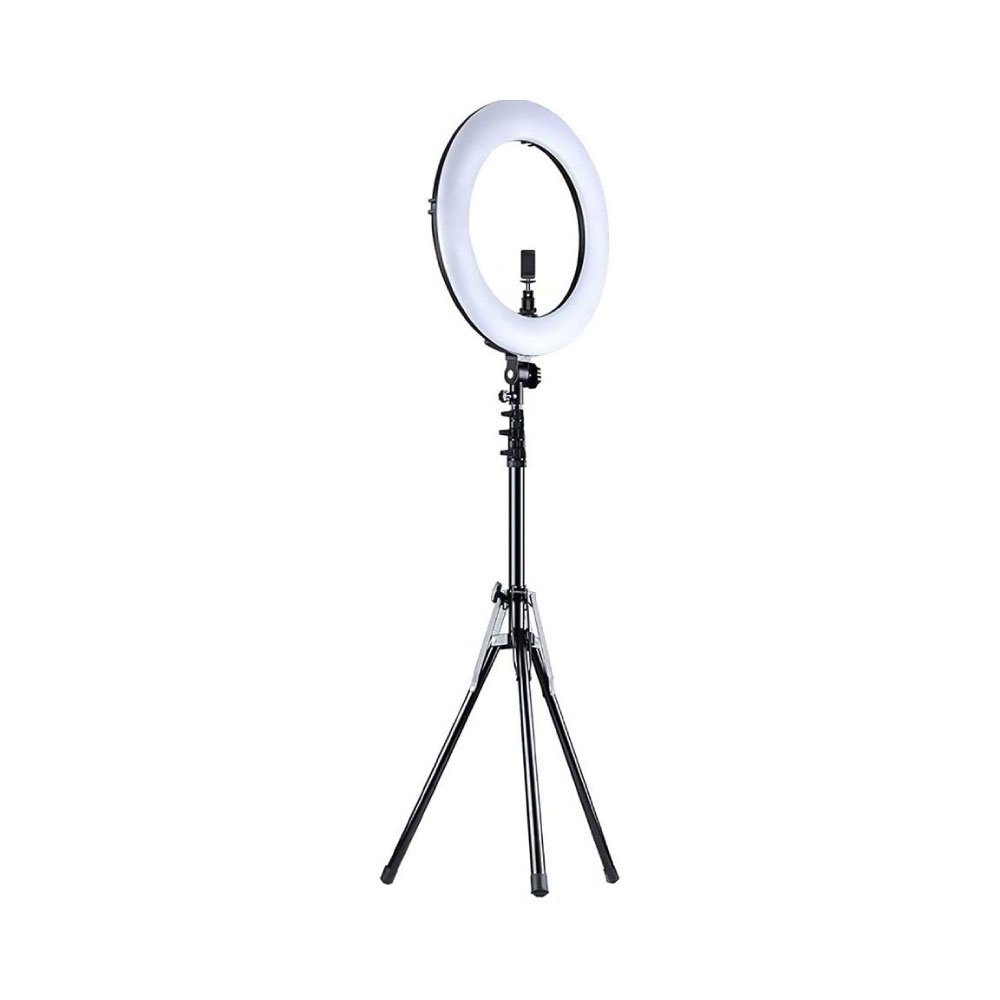 - Lampara Led en forma de aro para transmisiones de video profesional.