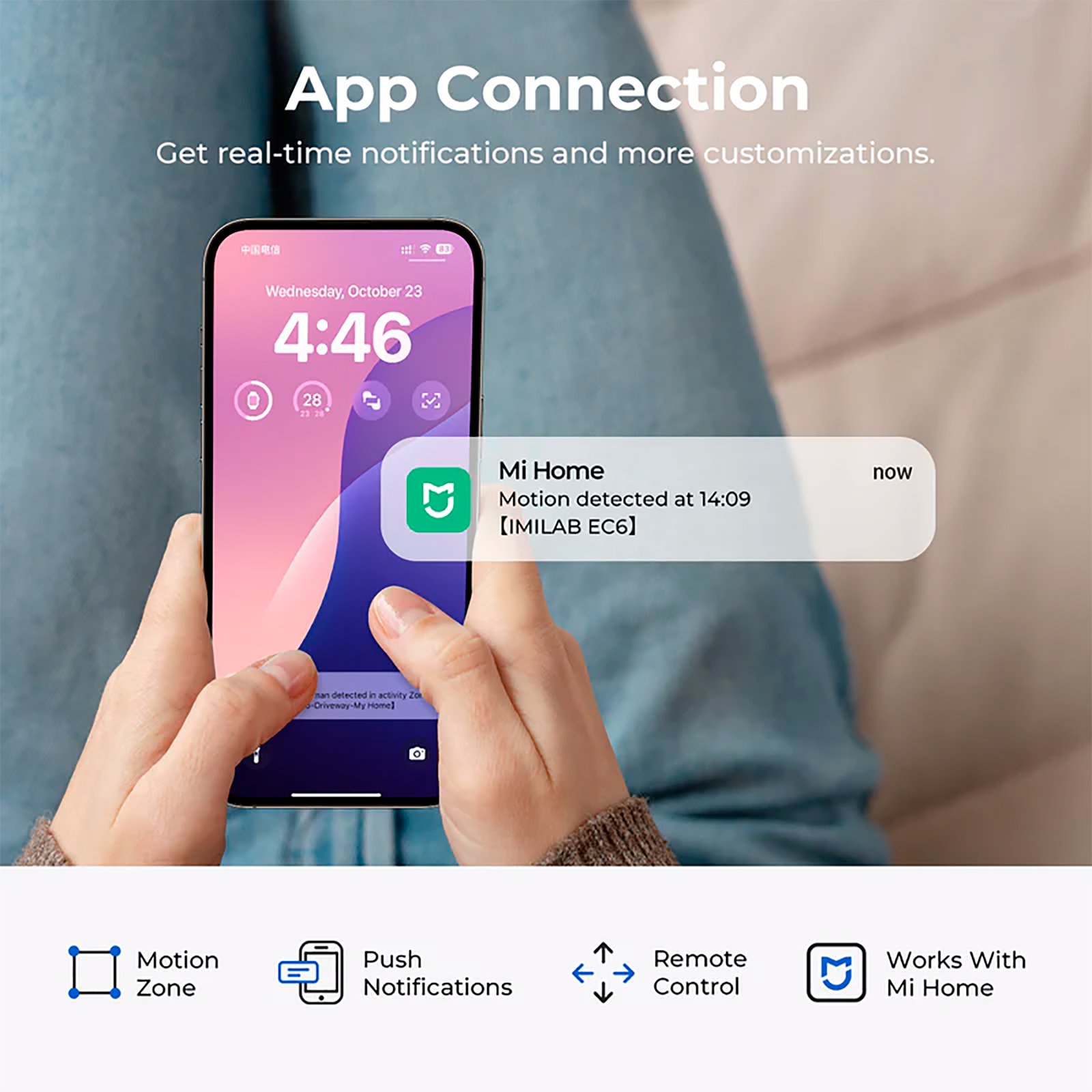 La cámara IMILAB EC6 ofrece vigilancia de 360° con seguimiento automático de personas y vehículos. Gracias a su resolución 3K y su función de chat en vivo, conectarse con los visitantes es muy sencillo. Se adapta a diversos espacios al aire libre y se monta fácilmente en techos, paredes o columnas.