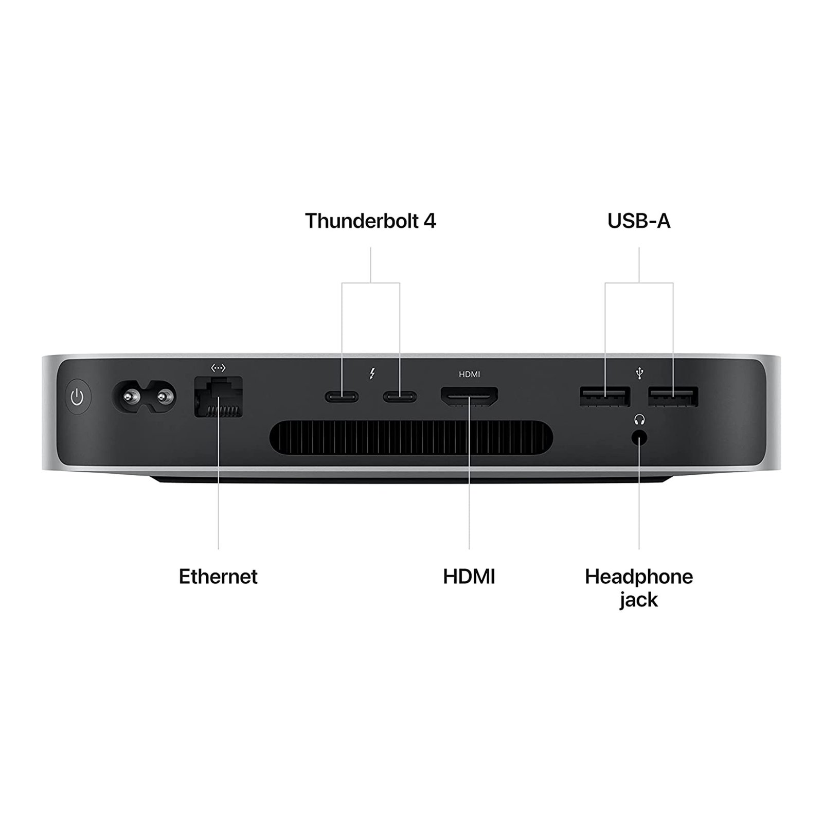 Puertos: HDMI 2.0 x 1, THUNDERBOLT 4 x 2, USB A x 2, GIGABIT ETHERNET x 1, 3,5 mm (AURICULARES) x 1.