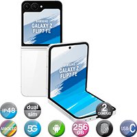 SAMSUNG – SMARTPHONE GALAXY Z FLIP7 FE SM-F761B – IP48. 6,7» MULTITÁCTIL FOLDABLE DYNAMIC AMOLED 2X 120Hz. 3,4» SUPER AMOLED 60Hz. DUALSIM. 5G. 10 CORE. ANDROID 16. RAM 8GB / ROM 256GB. CÁMARA DOBLE 50MP. WIFI. BLUETOOTH. GPS. NFC. 4000mAh.