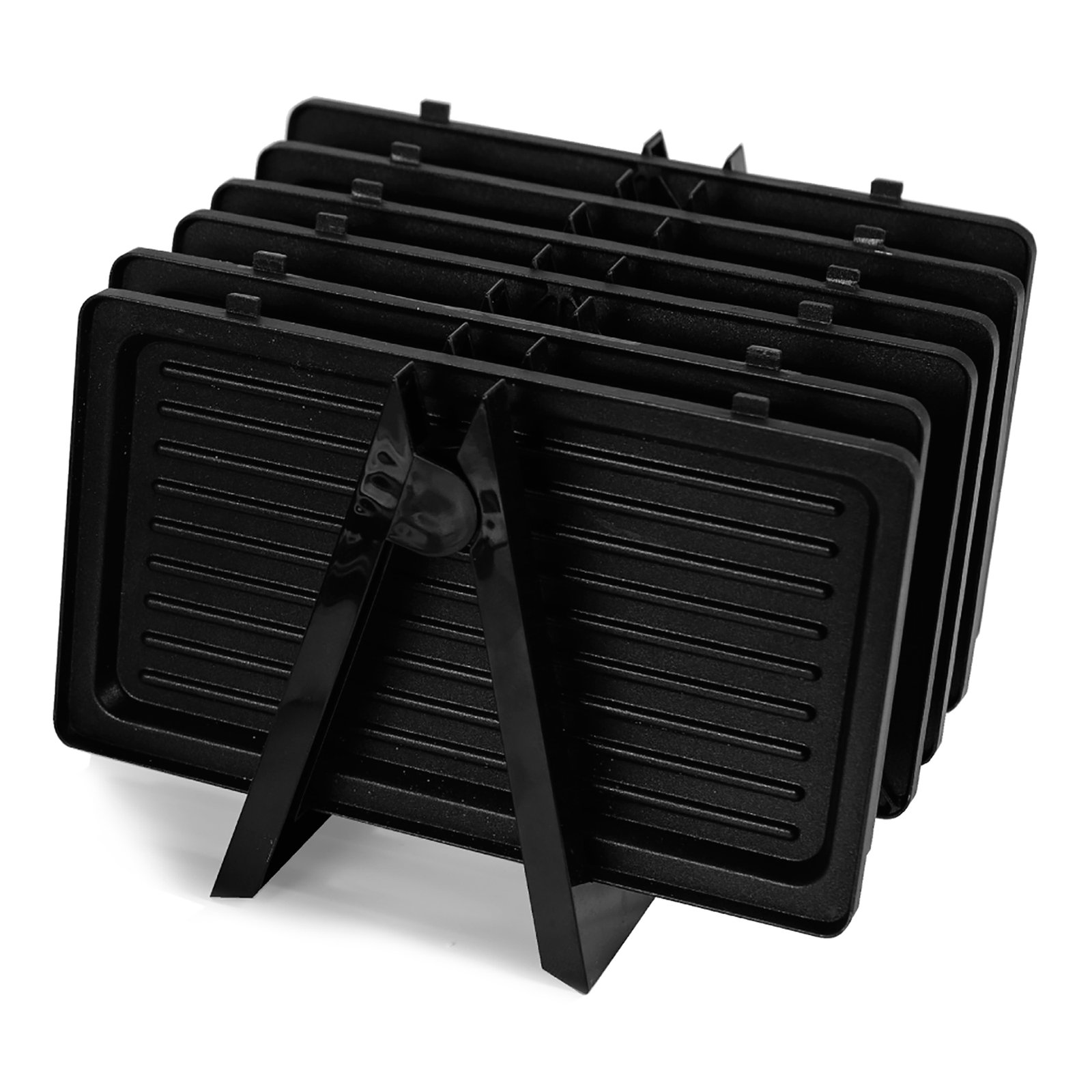 Placas intercambiables para: sandwiches, waffles, omelettes, plancha y grill.