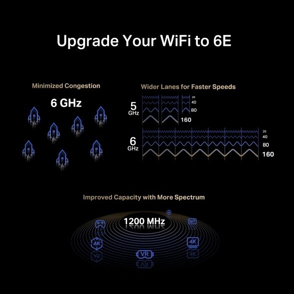 Velocidad de tres bandas imparable: Velocidades de hasta 2402 Mbps (6 GHz) + 2402 Mbps (5 GHz) + 574 Mbps (2,4 GHz)