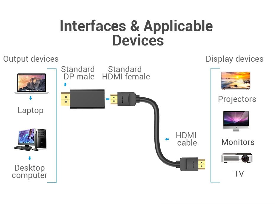 Adaptador DP a HDMI Macho/ Hembra / Negro 1080p HBKB0 Vention