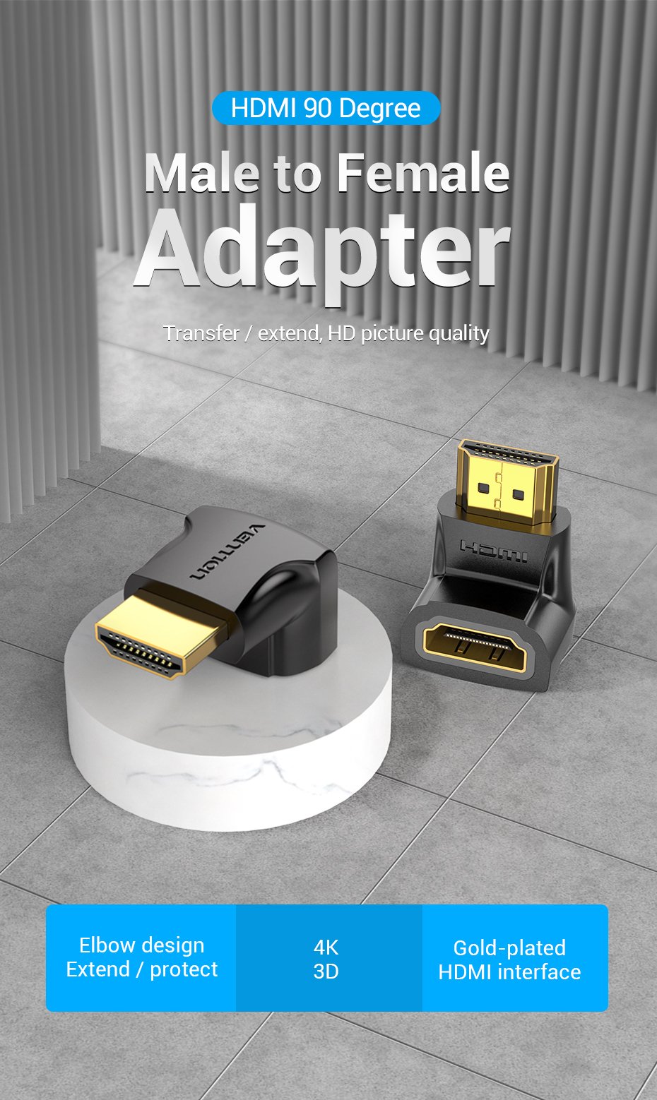 Adaptador HDMI de 270° Macho/Hembra / Negro AINB0 Vention