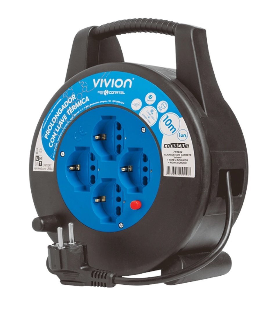 Alargue carrete 10 metros 4xSchuko a ficha Schuko Conatel