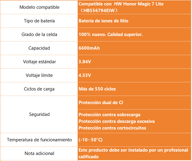 Batería Huawei Honor Magic 7 Lite HB556794EIW ORYRO