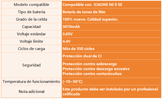 Batería para Xiaomi Mi 9 SE 3070mAh BM3M ORYRO