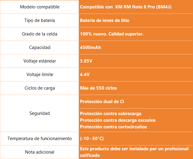 Batería para Xiaomi Redmi Note 8 Pro BM4J 4500mAh ORYRO