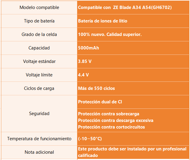 Batería para ZTE Blade A34/A54/A75 5G GH6702 ORYRO