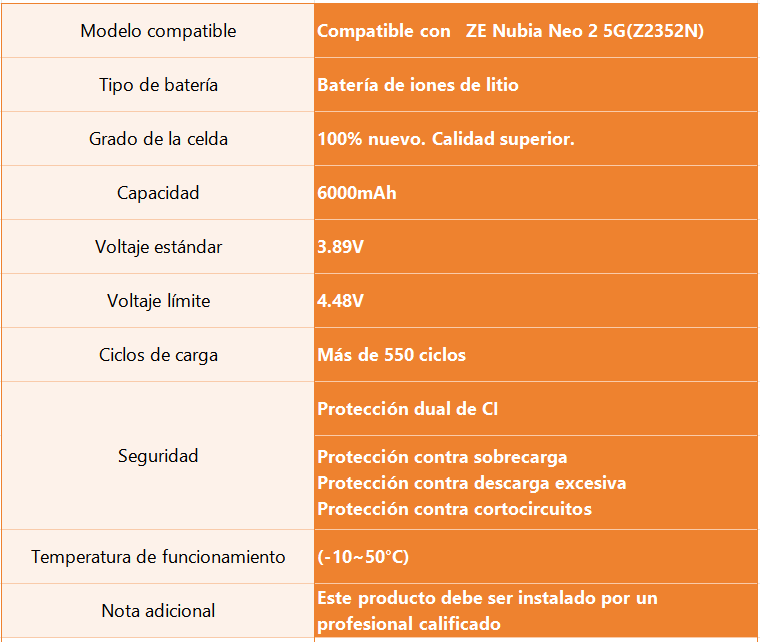 Batería para ZTE Nubia Neo 2 5G Z2352N ORYRO