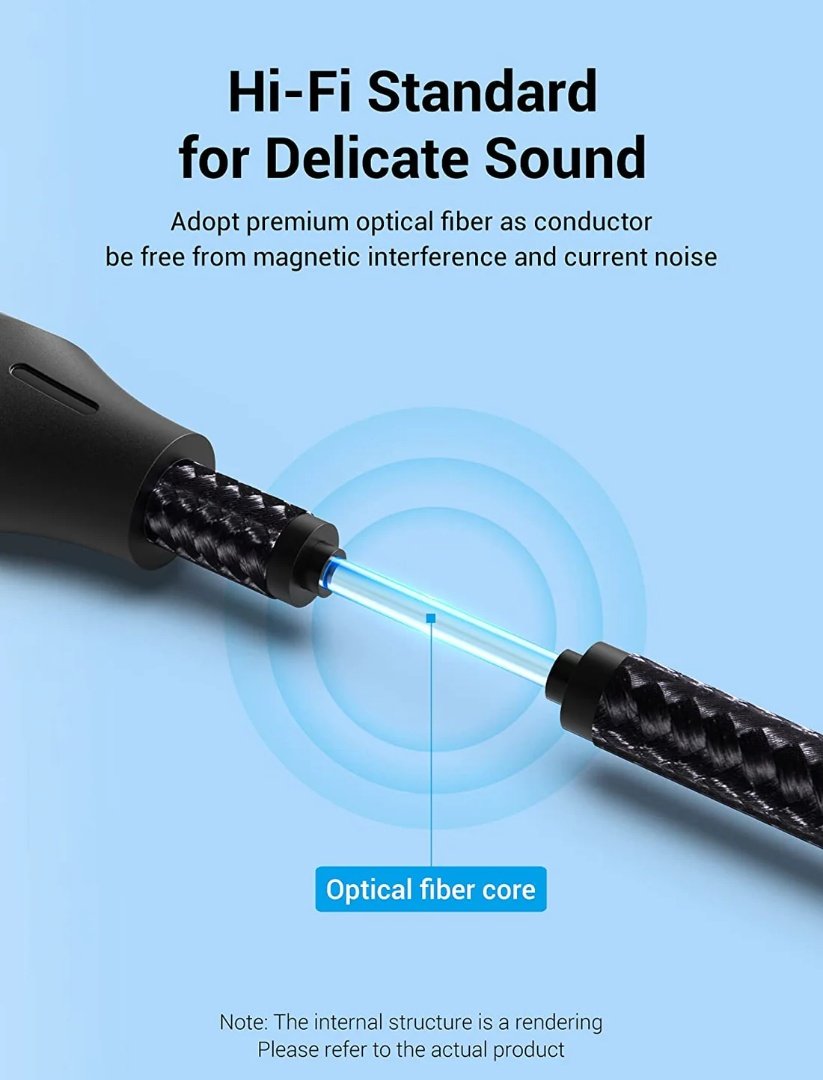 Calidad de sonido incomparable: Con un núcleo de fibra TORAY japonesa, este cable transmite audio digital sin distorsión y ofrece un sonido nítido para música, películas y juegos.