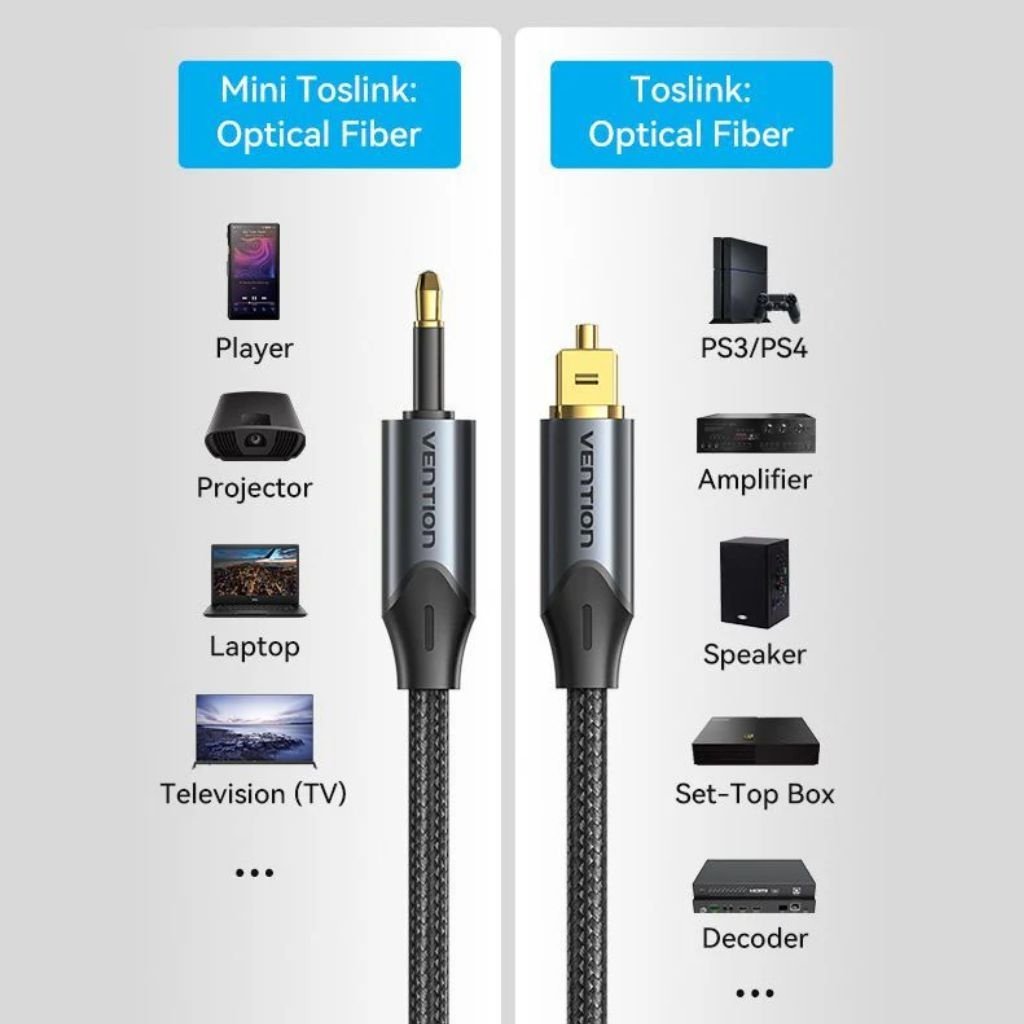 Cable de Audio Toslink a 3.5mm Mini Toslink Macho/Macho / 2M / Negro BKCBH Vention