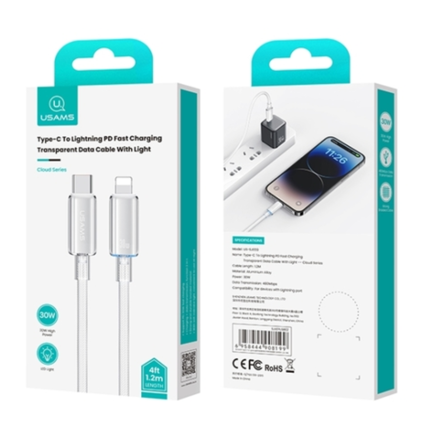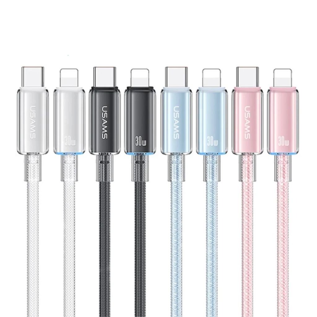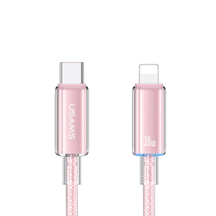 Cable de Datos Transparente SJ659 USB C a Lightinig 1.2M Rosado USAMS