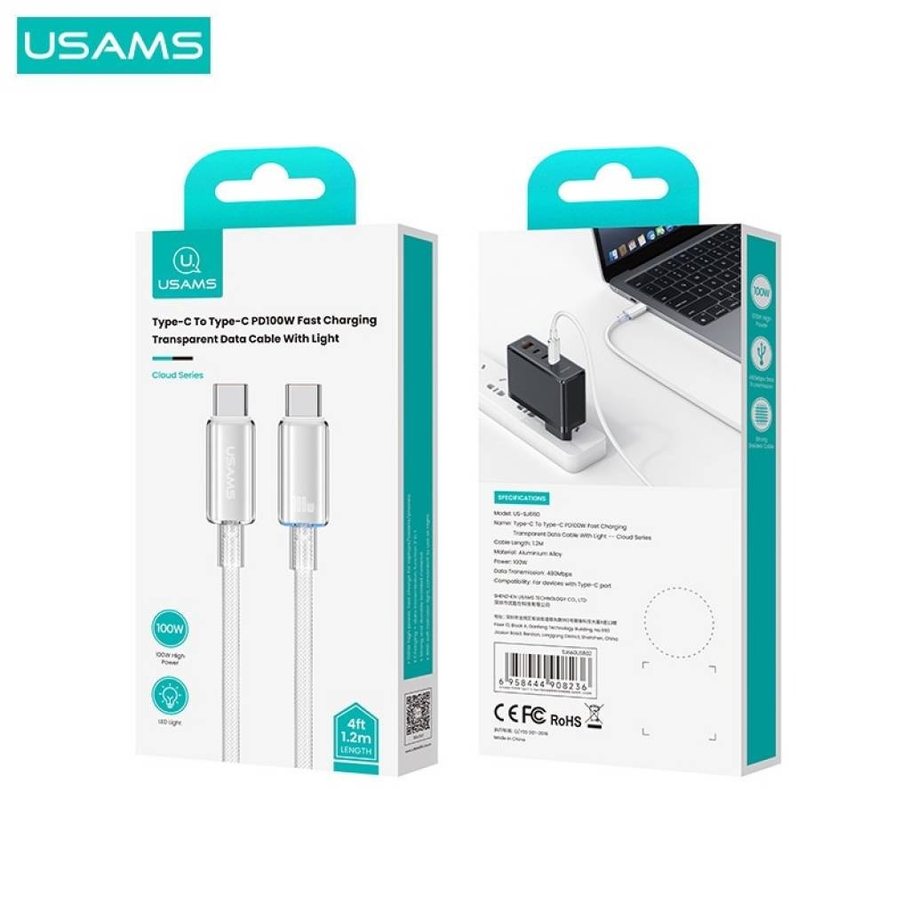 Cable de Datos Transparente SJ660 USB C a USB C 100 W 1.2M Azul USAMS