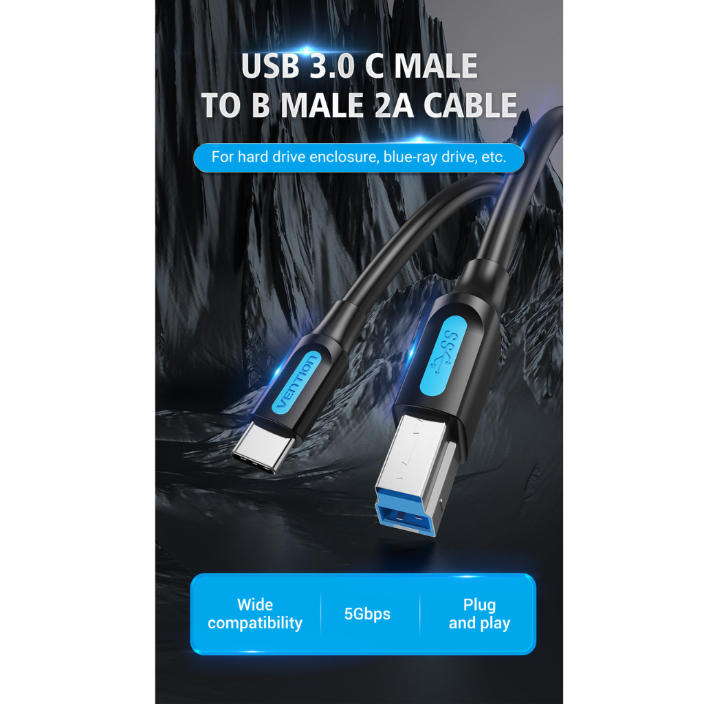Cable de Impresora USB-C 3.0 a USB-B Macho/Macho / 1M / Negro CQVBF Vention