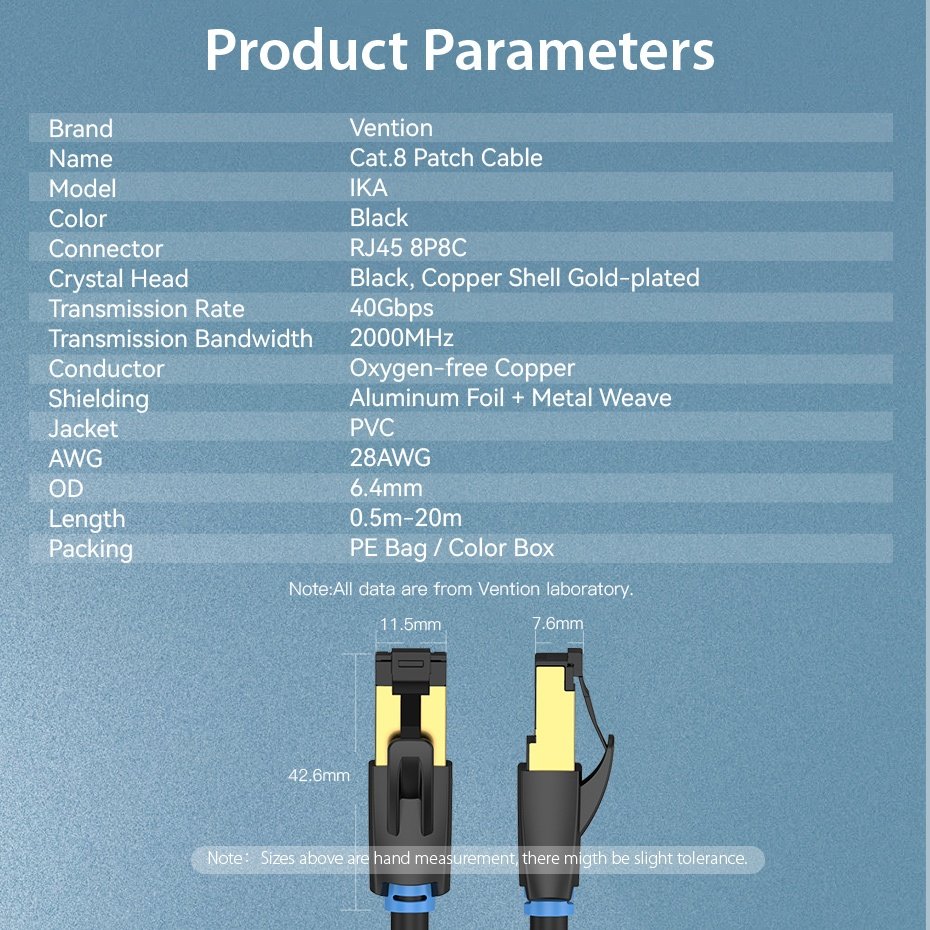Cable de Red Cat.8 SFTP / 8M / Negro IKABK Vention