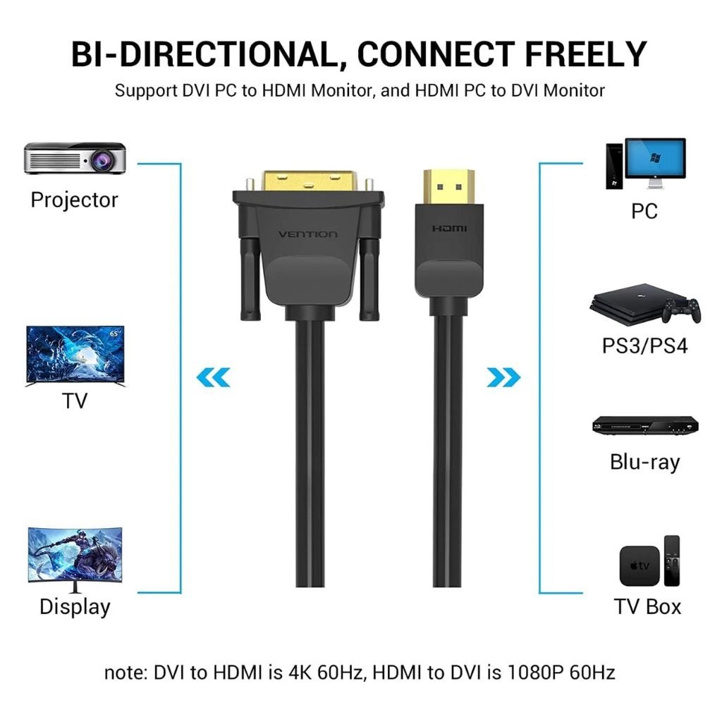 Cable HDMI a DVI Macho/Hembra / 3M / Negro ABFBI Vention