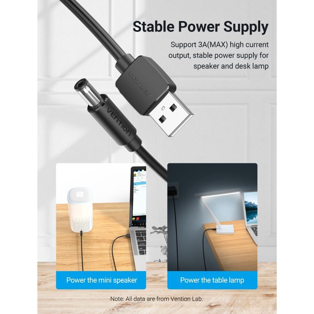 Cable USB-A a DC 5.5 mm 1.5M Negro CEYBG Vention