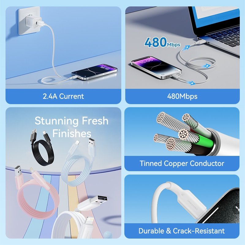 Cable USB-A a Lightning 2.4A / 2M / Negro LAMBH Vention