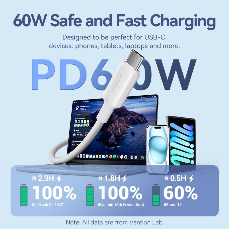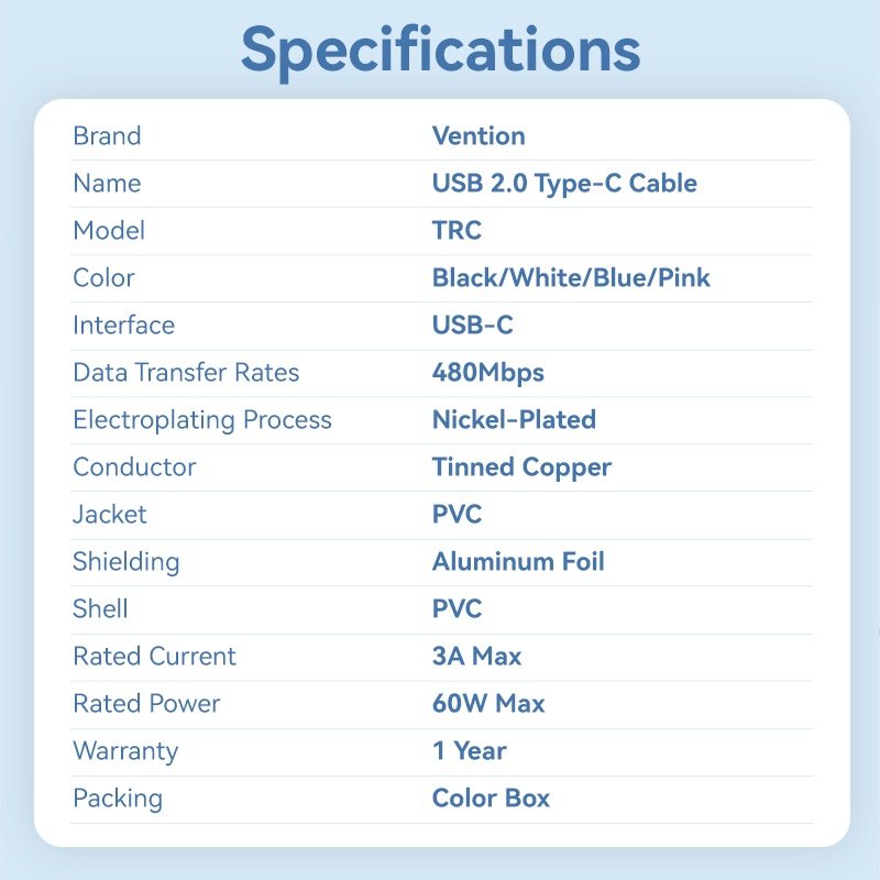 Cable USB-C a USB-C 3A / 1M / Blanco TRCWF Vention