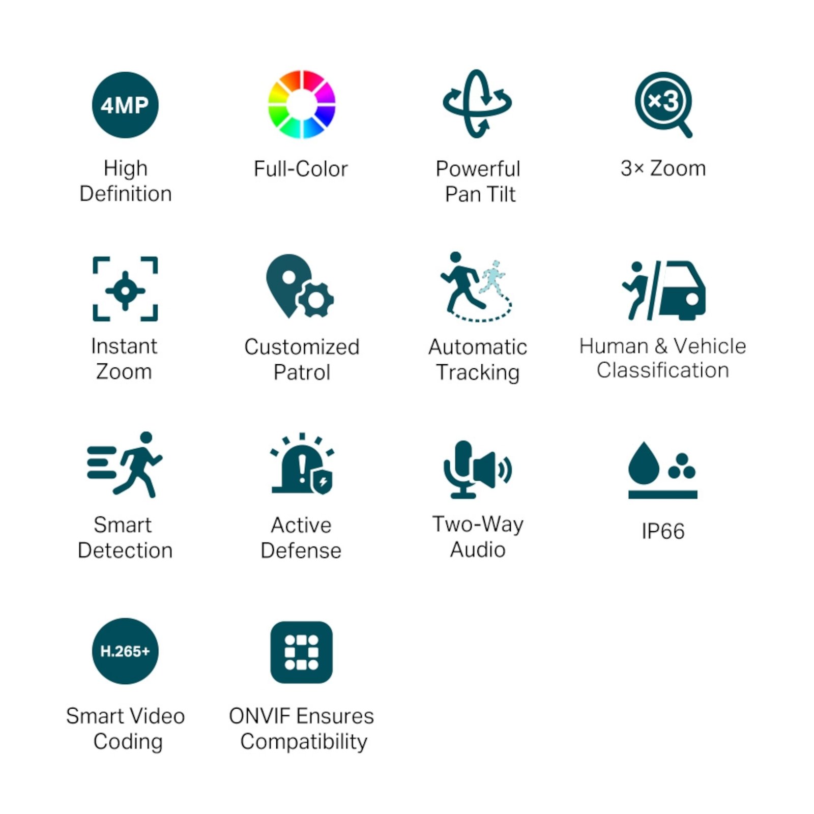 TP-LINK – CÁMARA DE SEGURIDAD EXTERIOR VIGI C540V – VISIÓN NOCTURNA. 2K. 4MP. ROTACIÓN 360°. ZOOM X3.