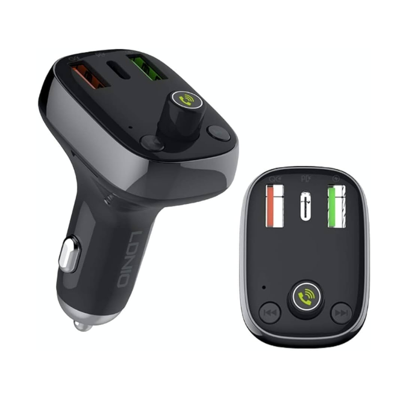 Cargador Auto C704Q USB C a Lightning 43W PD+AUTO-ID+QC4.0 Bluetooth FM Pantalla LED Negro LDNIO
