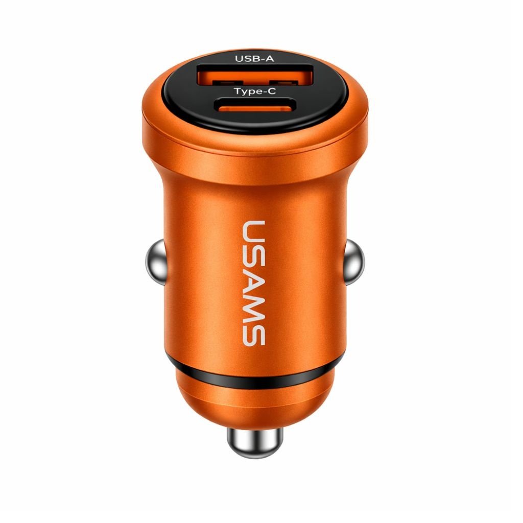 Cargador Auto USB A/USB C 30W Aluminio Anaranjado CC322 USAMS