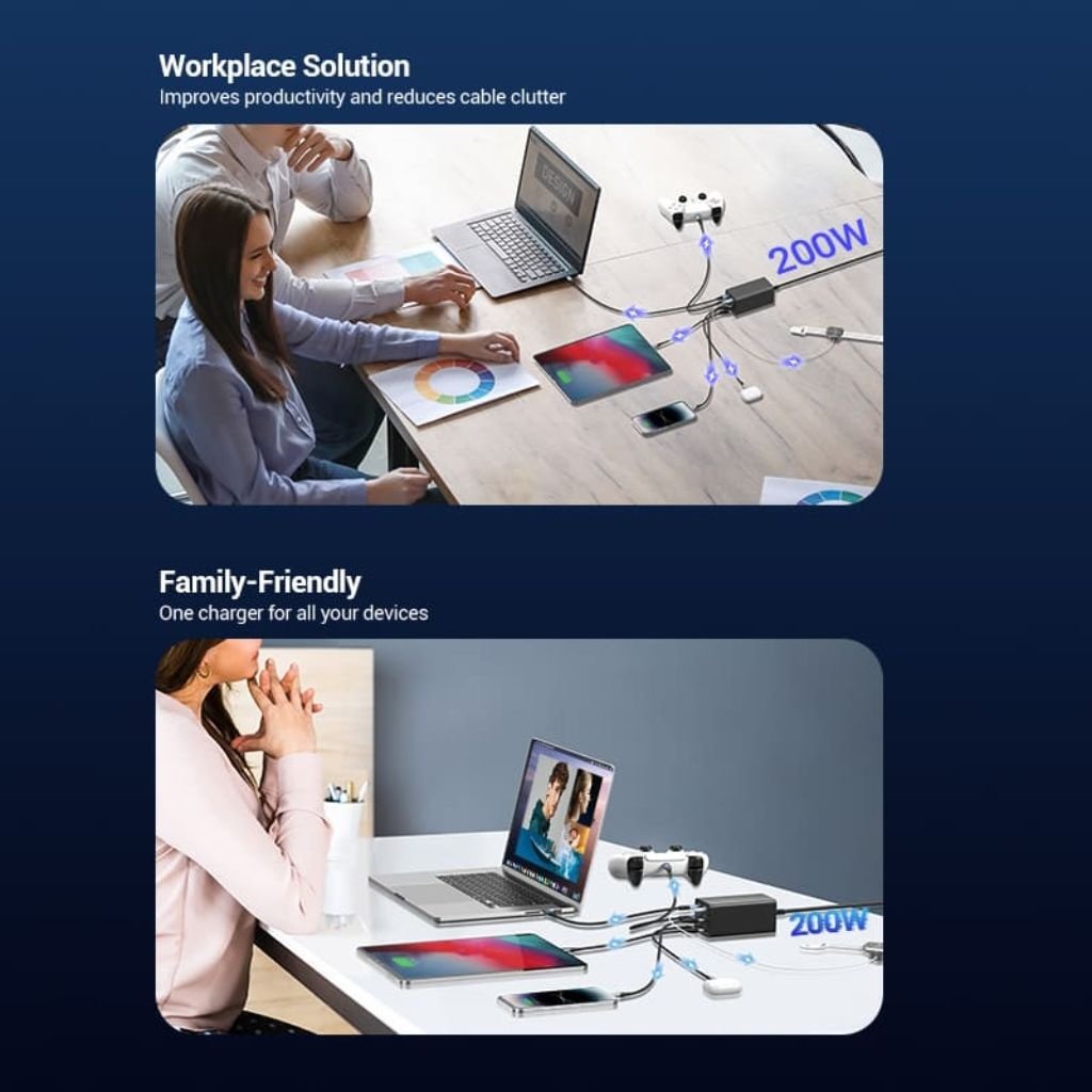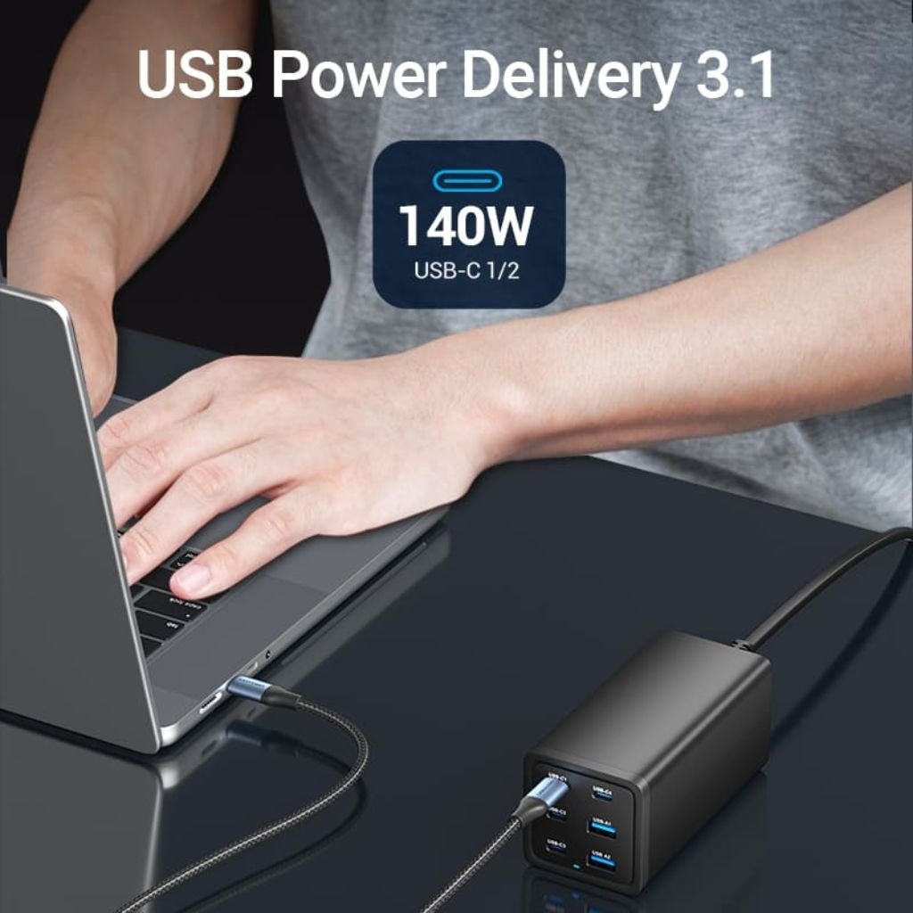 Cargador de Escritorio 2 USB-A+ 4 USB-C GaN 18W/18W/20W/45W/140W/140W / Cable 1.5M / Negro FENB0-EU Vention