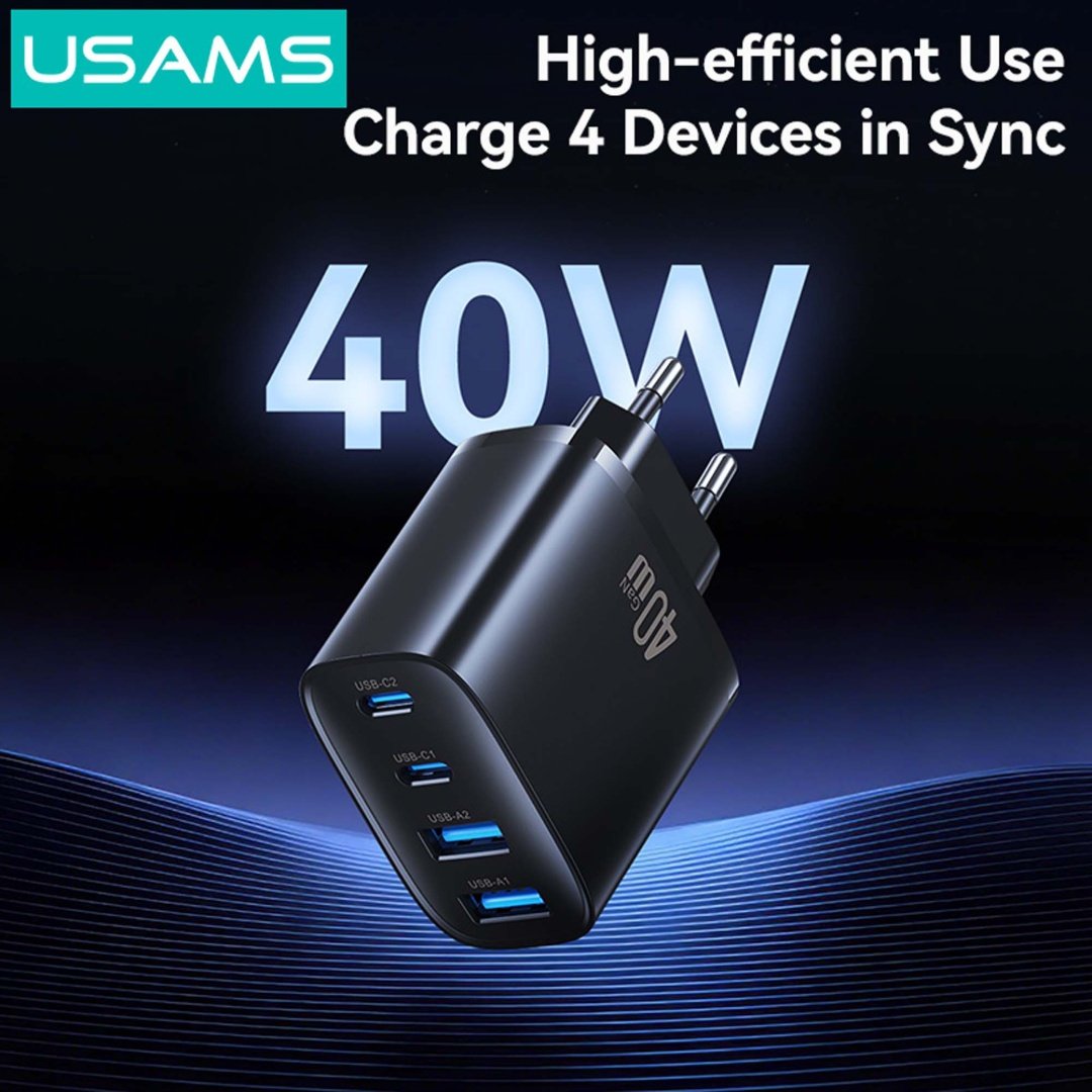 Cargador de Pared T70 40W 2-USB A /2 USB C GaN CC330 Negro USAMS