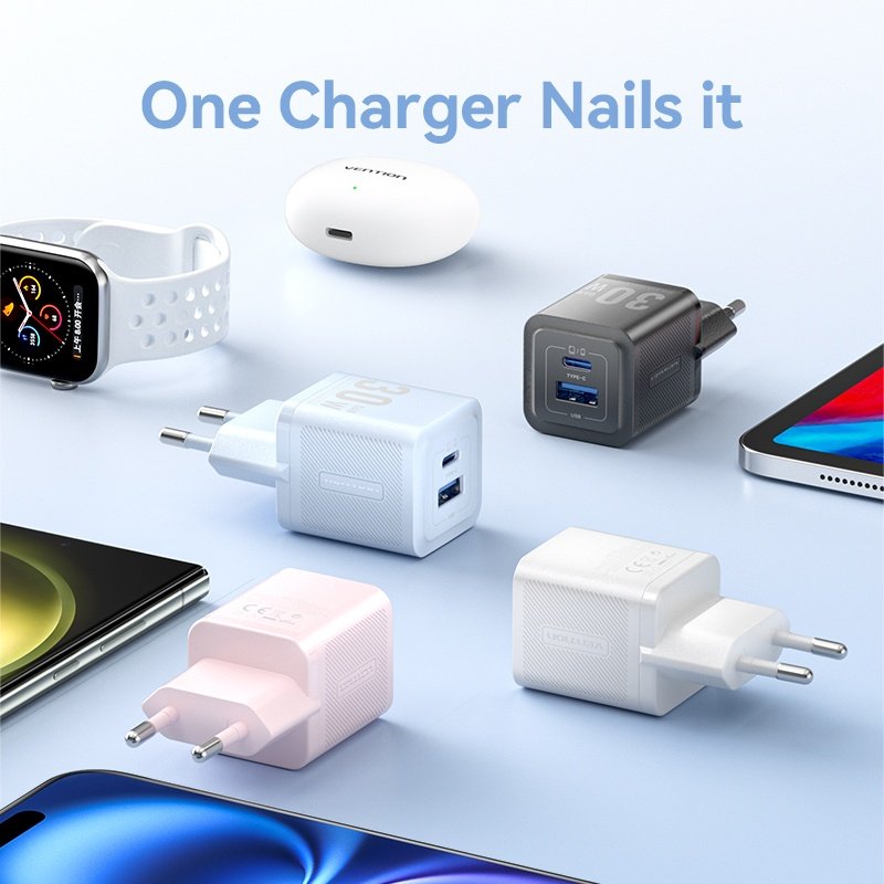 Cargador de Pared USB-C + USB-A GaN 30W/30W / Azul FEQL0-EU Vention