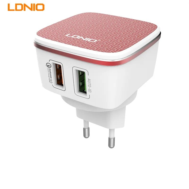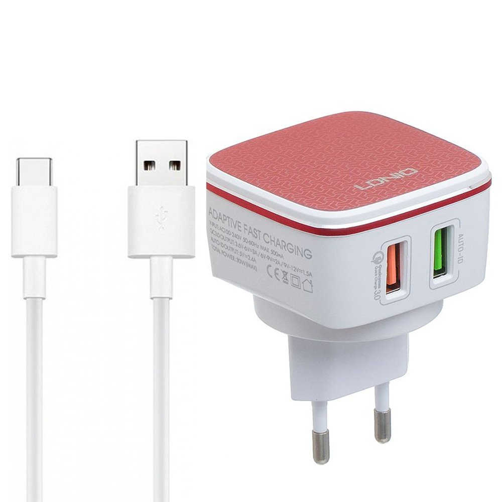 Cargador Pared A2405Q Tipo C Dual QC3.0 Carga Rápida Rojo LDNIO