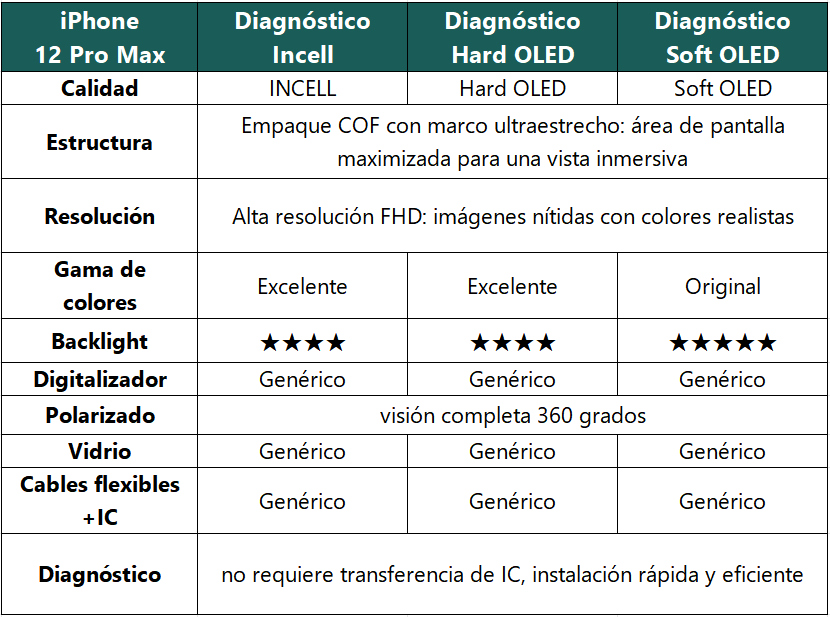 Display Apple iPhone 12 Pro Max (Incell High-End) Comp. Negro Diagnostic