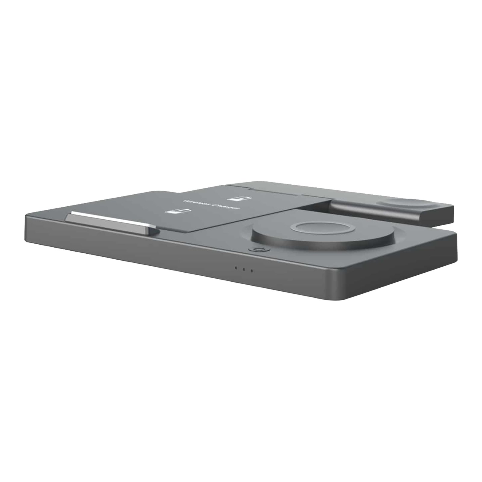 Libera 15 W de pura potencia inalámbrica para cargar tu smartphone, reloj y auriculares simultáneamente. Con su diseño elegante y plegable, la estación de carga inalámbrica ChargePro 3 en 1 se desliza sin esfuerzo en tu bolsillo o bolso. En casa o de viaje, disfruta de la facilidad de colocar tus dispositivos en el soporte, sin cables enredados ni velocidades de carga lentas. Ideal para el escritorio, la mesita de noche o cualquier otro lugar en el que necesites una carga rápida, ChargePro mantiene todos tus dispositivos esenciales cargados y listos para la acción.