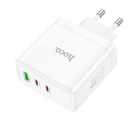 HOCO N30 CARGADOR DE PARED PD65 W 2 USB-C QC3,0 y 1 USB A WHITE