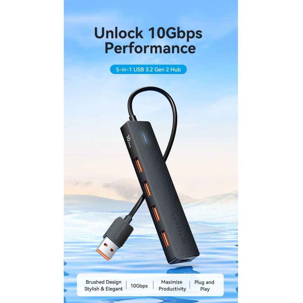 HUB 5 en 1 USB-A 3.2 Gen 2 4 x USB-A / 1 x USB-C / 10G / 0.15M / Negro CHOBB Vention