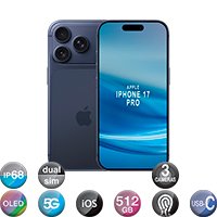 APPLE – SMARTPHONE IPHONE 17 PRO – IP68. 6,3» MULTITÁCTIL SUPER RETINA XDR OLED 120Hz HDR. DUALSIM eSIM x2. 5G. 6 CORE. IOS 26. RAM 12GB / ROM 512GB. CÁMARA TRIPLE 48MP. WIFI. BLUETOOTH. GPS. NFC. LI-ION 4252mAh.