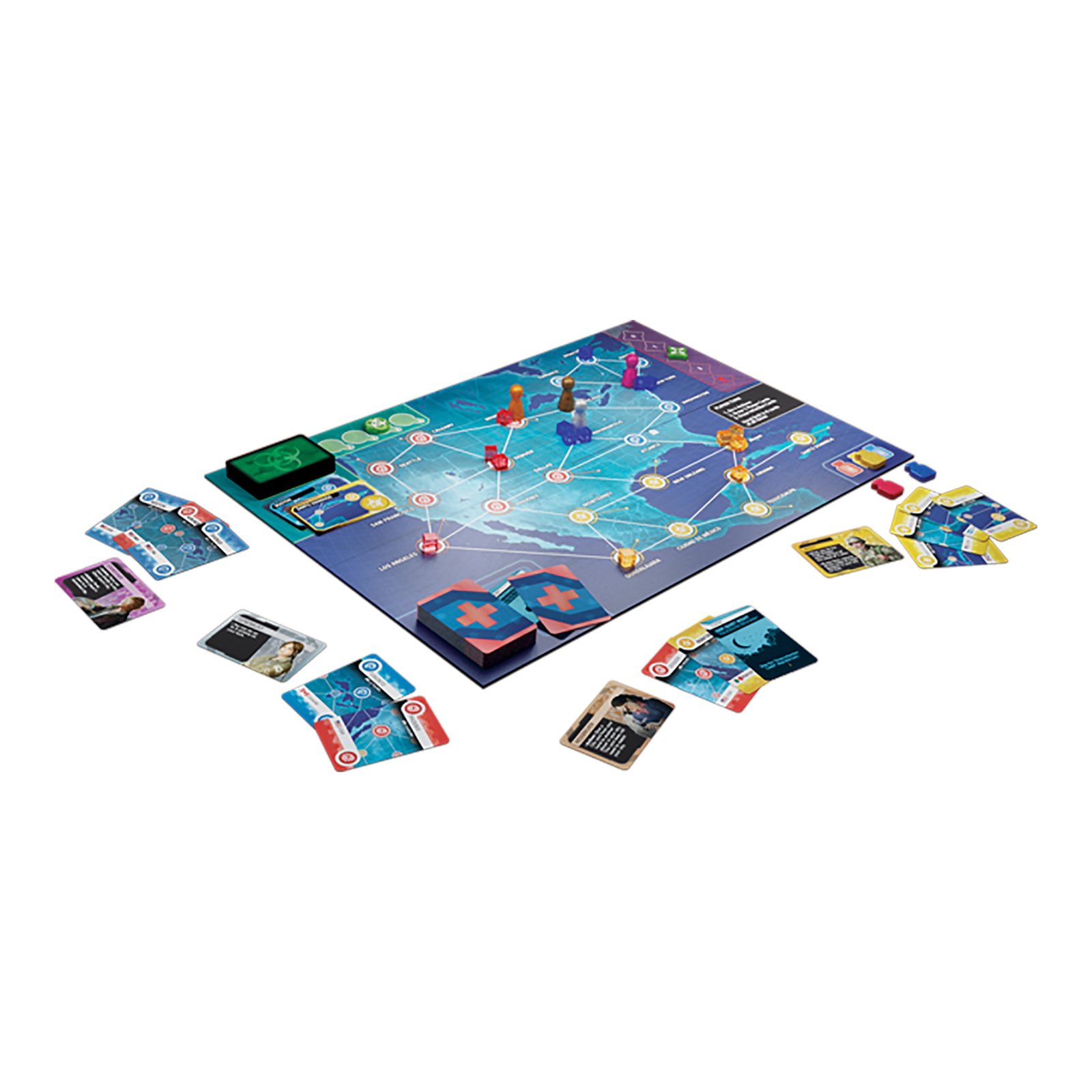 Pandemic: Zona 0 Norteamérica es un juego de mesa que te ofrece la auténtica experiencia cooperativa de Pandemic, pero en un formato reducido, más ágil, rápido y pequeño, para que puedas llevarlo fácilmente a cualquier parte y jugar partidas más cortas pero igualmente intensas. Detén los brotes, estudia los virus, haya las curas, y cuidado con el tiempo!.
