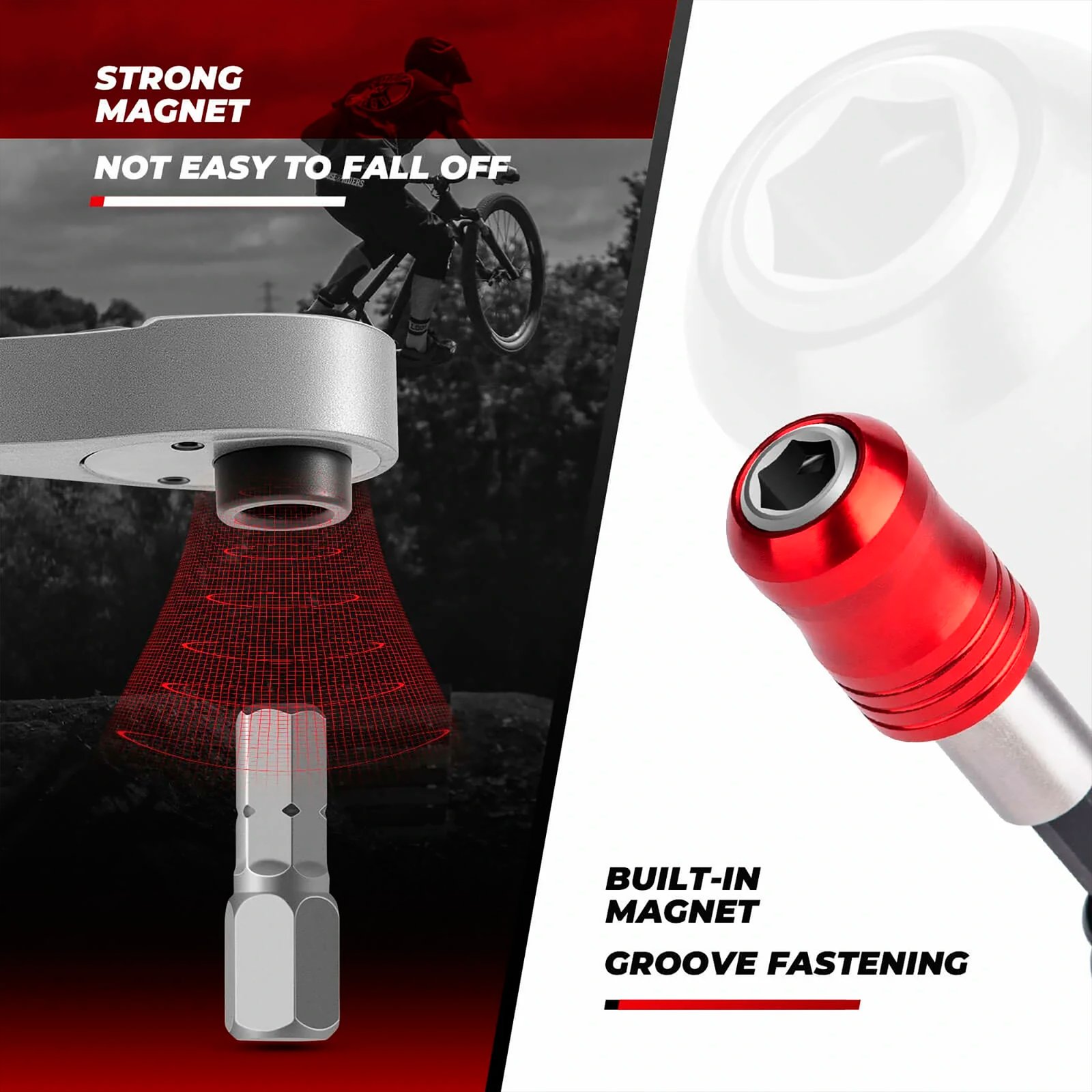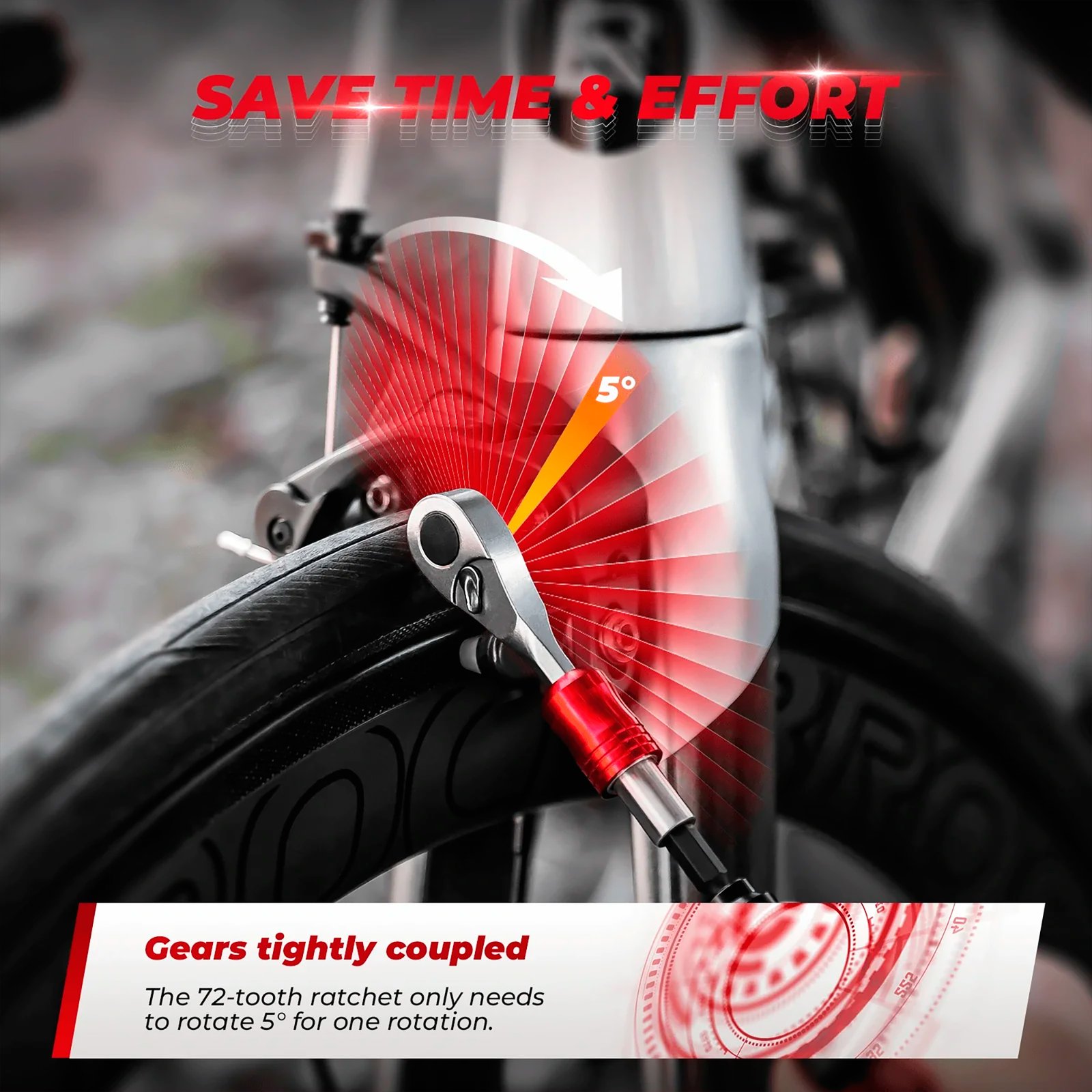 Juego de llave de trinquete de 1/4» con puntas Torx y Allen, ideal para mantenimiento de bicicletas de ruta y montaña.