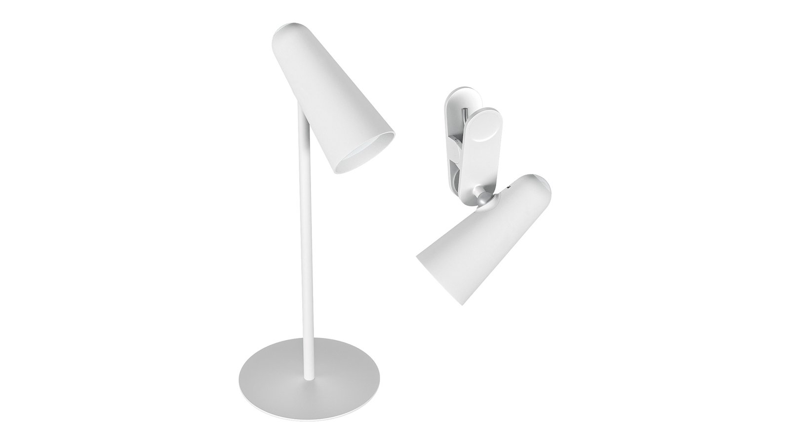 Diseño multifuncional: Incluye un cabezal de lámpara, una base de escritorio y una base con clip, permitiendo su uso como lámpara de escritorio, lámpara con clip o linterna portátil.