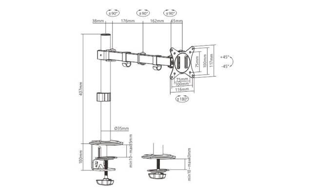 LDT66-C012 – Soporte Monitor Brazo Móvil Hasta 32″/ 9Kg Brateck