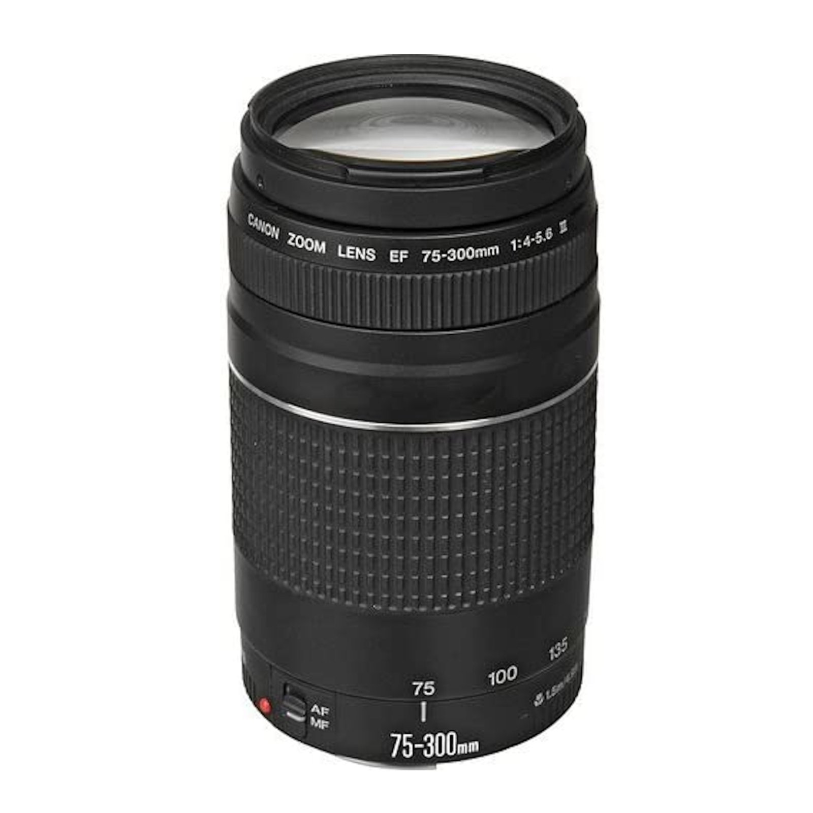 CANON – LENTE EF 75-300mm F/4-5,6 III – Apertura mínima: 32-45 mm. Aumento máximo: 0,25x (a 300 m). Incluye: tapa del objetivo E-58/E-58II.