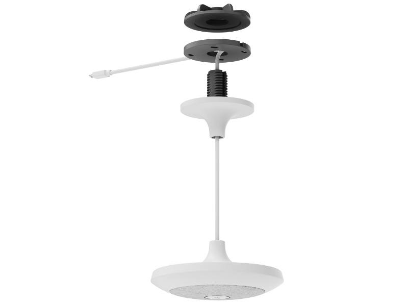 La pieza de montaje colgante para micrófono permite colgar micrófonos Rally en salas con techos altos y en mesas en las que no se pueden instalar micrófonos o que tienen características particulares