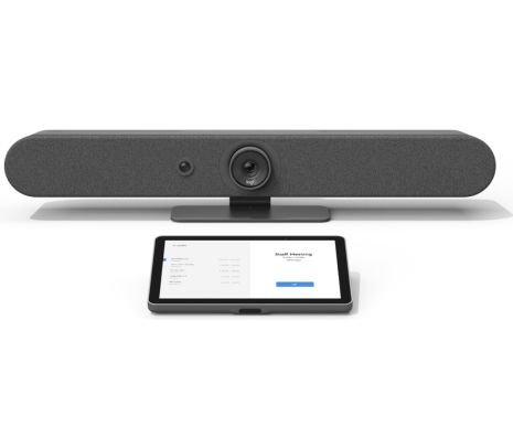 Una solución completa que incluye una barra de video todo-en-uno y un controlador táctil con conectividad PoE