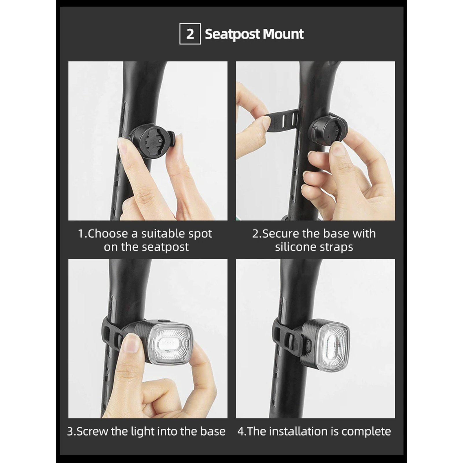 Instalación en sillín o tija de sillín.