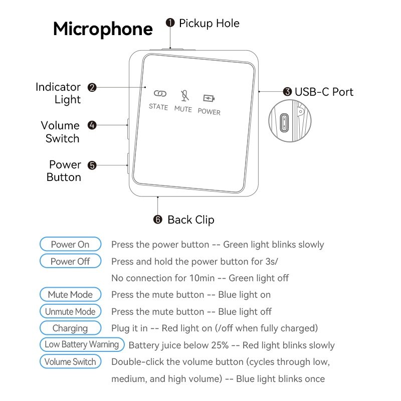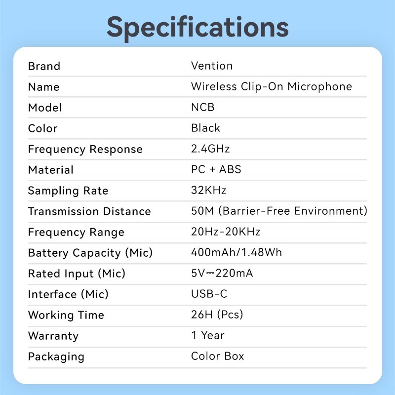 Microfono Solapero Tipo C Pack x2 / Negro NCBB0 Vention